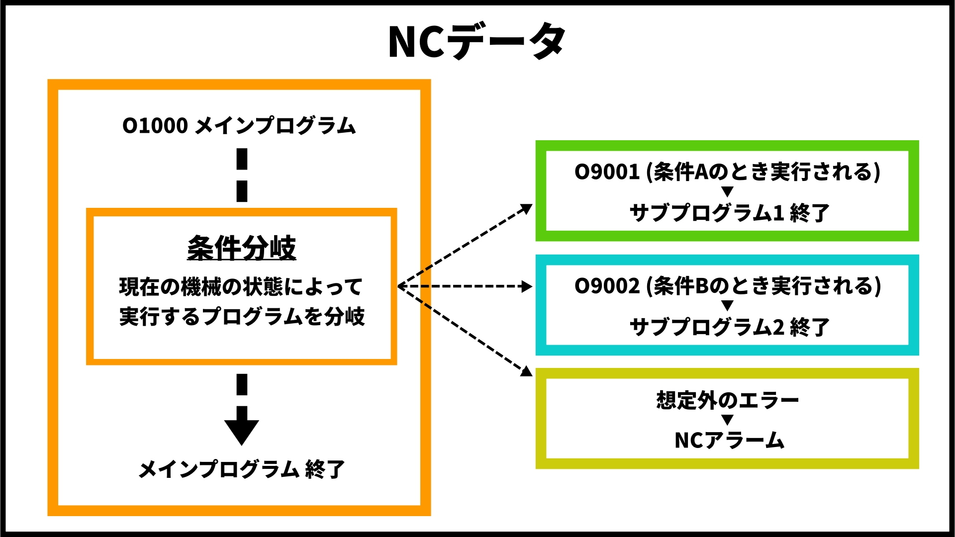 プログラムの流れに条件分岐を組み込むと、NCデータがより利用しやすくなります。