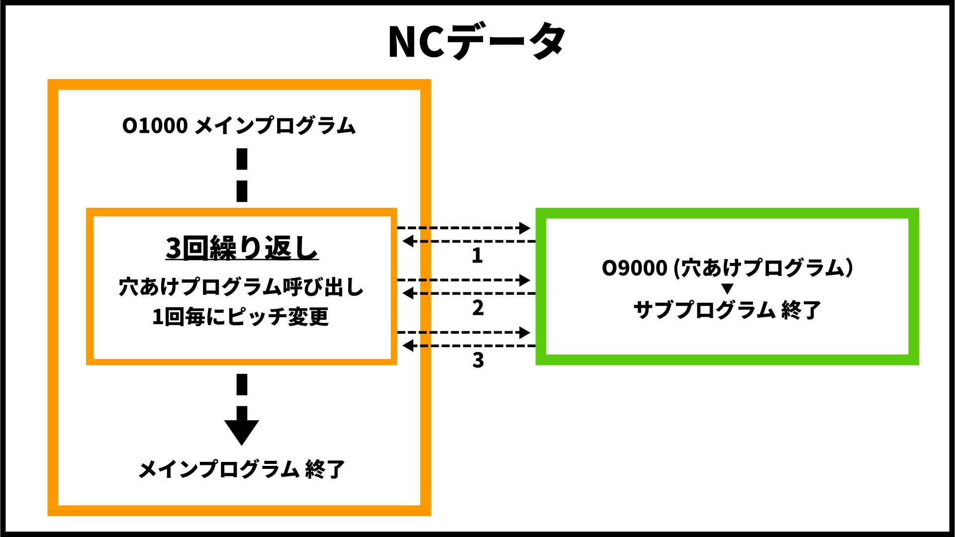同じ加工プログラムや、寸法を変えただけで動きは同じプログラムなどを使うときは繰り返しを使うと便利です。